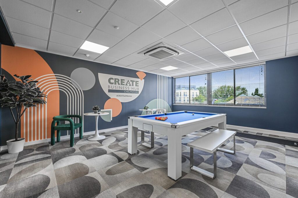 Our offices to rent in Chelmsford provide kitchens on each floor, chillout areas, snooker room and Zoom pods. Our welcoming staff, combined with our modern office layout, makes us confident that we will exceed your workplace expectations and you won’t want to leave!