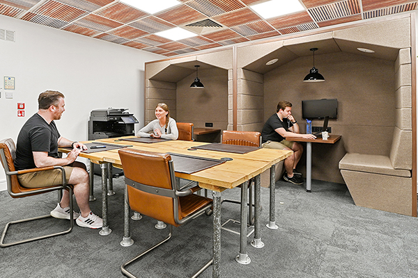 Our premises are filled with innovative and creative touches to make your visit more enjoyable. You can take a break in our chill-out spaces. You can also find some quiet time in a work pod or hold a team meeting in one of our large meeting rooms.